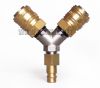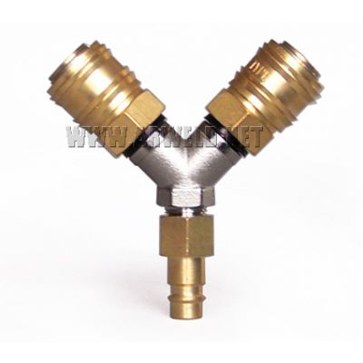 Trójnik wyposażony jest w standardowe szybkozłączki pneumatyczne oraz gwinty 1/4".