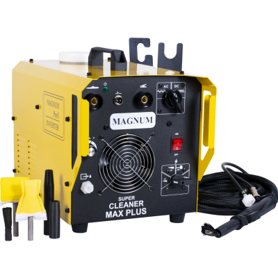 Urządzenie marki MAGNUM SUPER CLEANER MAX PLUS przeznaczone jest wyłącznie do trawienia (czyszczenia) spawów, zgrzewów na stali nierdzewnej oraz odnawiania (polerowania)powierzchni stali nierdzewnych. Urządzenie pozwala na usunięcie przebarwień powstałych podczas spawania (przegrzania materiału) za pomocą procesu trawienia elektrochemicznego.
