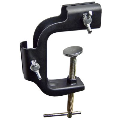 Utrzymuje w pozycji pionowej i poziomej szczypce klamrowy przy stole. Nakrętki motylkowe zabezpieczają i blokują szczypce.