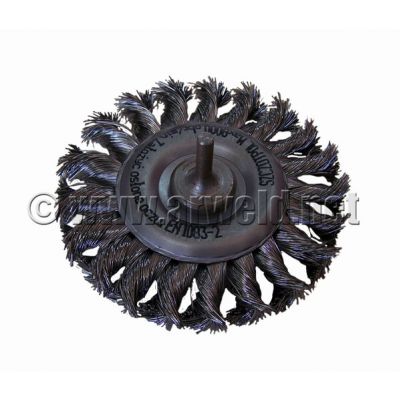 Szczotka tarczowa z drutu stalowego splatanego w warkocz. Przeznaczona do pracy w trudnodostępnych miejscach. Im mniejsza średnica szczotki, tym większa możliwość penetracji niedostępnych miejsc. Szczotkowanie tymi tarczami może poprzedzać proces nakładania powłok ochronnych, np. malowanie, również przed lutowaniem, spawaniem itp. Szczególnie polecana do prac trudniejszych, takich jak czyszczenie spawów, gratowanie, usuwanie zgorzelin.